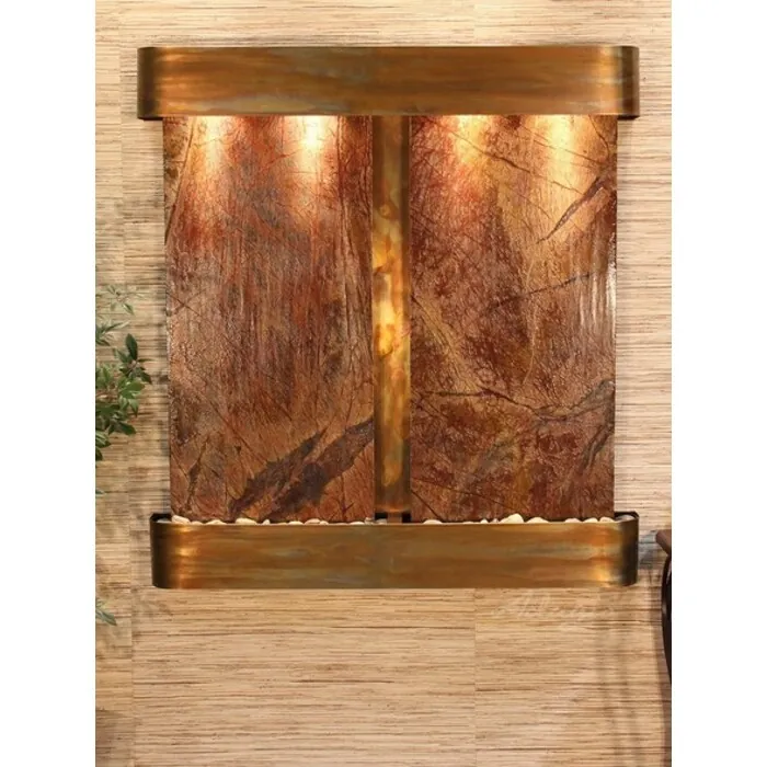 The Aspen Falls Collection offers the tranquility of water in motion falling over 2 beautiful Natural Slate, Marble, Featherstone, or Mirror surfaces. Adagio Water Features represents the best the industry has to offer. *Comes complete with Polished River Rocks, Halogen lighting, and 2 pumps. *Comes with EZ Installation Instructions and DVD. *On/Off pull chain allows you to run lights only, water only, or water and lights together. *Dimmer Switch allows you to adjust the lighting to produce the desired ambiance. *Optional: Stone Selection, LED lights w/ remote, Black Polished Pebbles, Customized Logo and Water Distillers are available. *