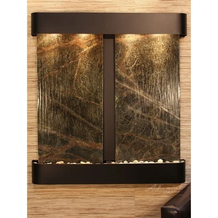 The Aspen Falls Collection offers the tranquility of water in motion falling over 2 beautiful Natural Slate, Marble, Featherstone, or Mirror surfaces. Adagio Water Features represents the best the industry has to offer. *Comes complete with Polished River Rocks, Halogen lighting, and 2 pumps. *Comes with EZ Installation Instructions and DVD. *On/Off pull chain allows you to run lights only, water only, or water and lights together. *Dimmer Switch allows you to adjust the lighting to produce the desired ambiance. *Optional: Stone Selection, LED lights w/ remote, Black Polished Pebbles, Customized Logo and Water Distillers are available. *
