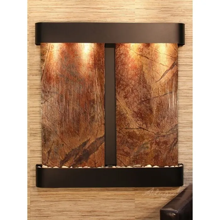 The Aspen Falls Collection offers the tranquility of water in motion falling over 2 beautiful Natural Slate, Marble, Featherstone, or Mirror surfaces. Adagio Water Features represents the best the industry has to offer. *Comes complete with Polished River Rocks, Halogen lighting, and 2 pumps. *Comes with EZ Installation Instructions and DVD. *On/Off pull chain allows you to run lights only, water only, or water and lights together. *Dimmer Switch allows you to adjust the lighting to produce the desired ambiance. *Optional: Stone Selection, LED lights w/ remote, Black Polished Pebbles, Customized Logo and Water Distillers are available. *