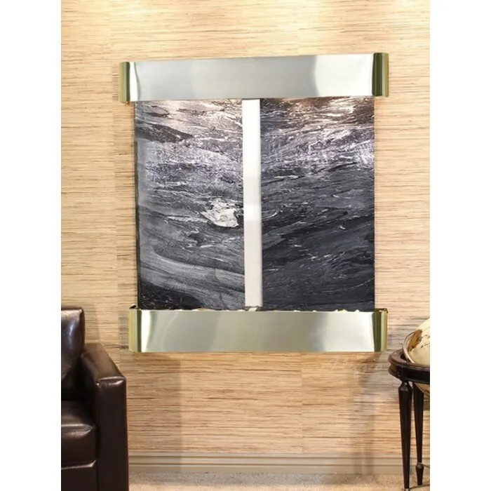 The Aspen Falls Collection offers the tranquility of water in motion falling over 2 beautiful Natural Slate, Marble, Featherstone, or Mirror surfaces. Adagio Water Features represents the best the industry has to offer. *Comes complete with Polished River Rocks, Halogen lighting, and 2 pumps. *Comes with EZ Installation Instructions and DVD. *On/Off pull chain allows you to run lights only, water only, or water and lights together. *Dimmer Switch allows you to adjust the lighting to produce the desired ambiance. *Optional: Stone Selection, LED lights w/ remote, Black Polished Pebbles, Customized Logo and Water Distillers are available. *