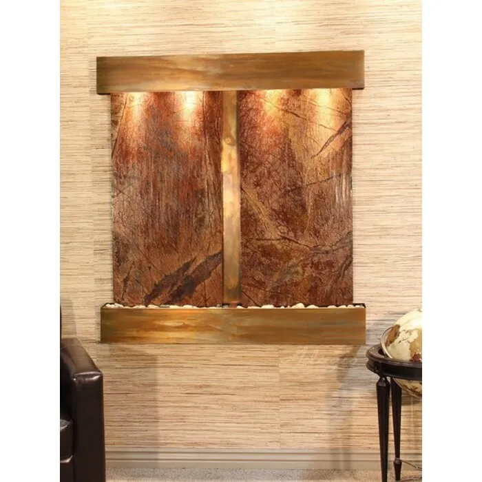 The Aspen Falls Collection offers the tranquility of water in motion falling over 2 beautiful Natural Slate, Marble, Featherstone, or Mirror surfaces. Adagio Water Features represents the best the industry has to offer. *Comes complete with Polished River Rocks, Halogen lighting, and 2 pumps. *Comes with EZ Installation Instructions and DVD. *On/Off pull chain allows you to run lights only, water only, or water and lights together. *Dimmer Switch allows you to adjust the lighting to produce the desired ambiance. *Optional: Stone Selection, LED lights w/ remote, Black Polished Pebbles, Customized Logo and Water Distillers are available. *