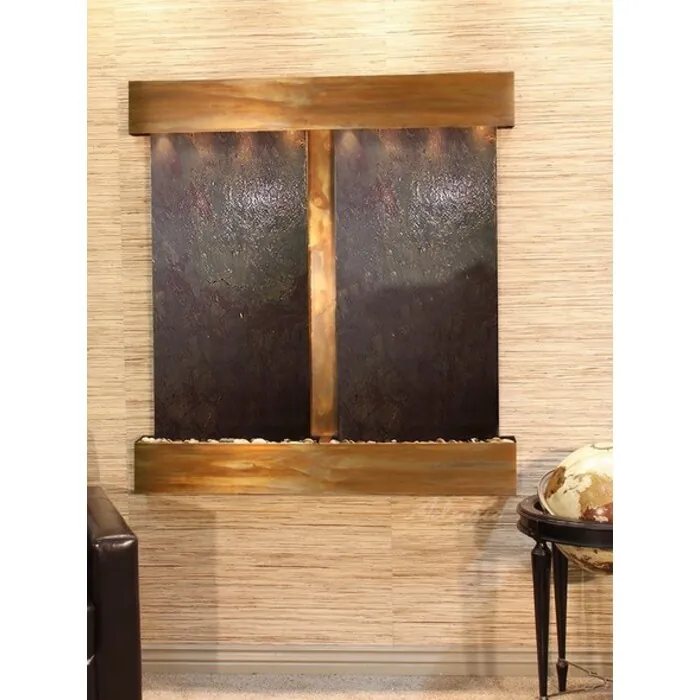 The Aspen Falls Collection offers the tranquility of water in motion falling over 2 beautiful Natural Slate, Marble, Featherstone, or Mirror surfaces. Adagio Water Features represents the best the industry has to offer. *Comes complete with Polished River Rocks, Halogen lighting, and 2 pumps. *Comes with EZ Installation Instructions and DVD. *On/Off pull chain allows you to run lights only, water only, or water and lights together. *Dimmer Switch allows you to adjust the lighting to produce the desired ambiance. *Optional: Stone Selection, LED lights w/ remote, Black Polished Pebbles, Customized Logo and Water Distillers are available. *
