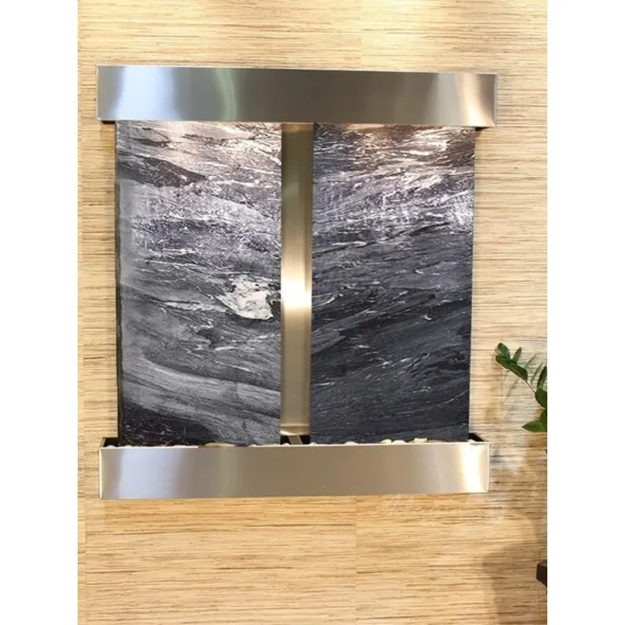The Aspen Falls Collection offers the tranquility of water in motion falling over 2 beautiful Natural Slate, Marble, Featherstone, or Mirror surfaces. Adagio Water Features represents the best the industry has to offer. *Comes complete with Polished River Rocks, Halogen lighting, and 2 pumps. *Comes with EZ Installation Instructions and DVD. *On/Off pull chain allows you to run lights only, water only, or water and lights together. *Dimmer Switch allows you to adjust the lighting to produce the desired ambiance. *Optional: Stone Selection, LED lights w/ remote, Black Polished Pebbles, Customized Logo and Water Distillers are available. *