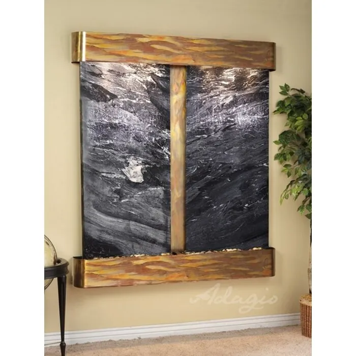 The Cottonwood Falls Collection offers the tranquility of water in motion falling over 2 beautiful Natural Slate, Marble, Travertine, Featherstone, or Mirror surfaces. Adagio Water Features represents the best the industry has to offer. *Comes complete with Polished River Rocks, Halogen lighting, and 2 pumps. *Comes with EZ Installation Instructions and DVD. *On/Off pull chain allows you to run lights only, water only, or water and lights together. *Dimmer Switch allows you to adjust the lighting to produce the desired ambiance. *Optional: Stone Selection, LED lights w/ remote, Black Polished Pebbles, Customized Logo and Water Distillers are available. *