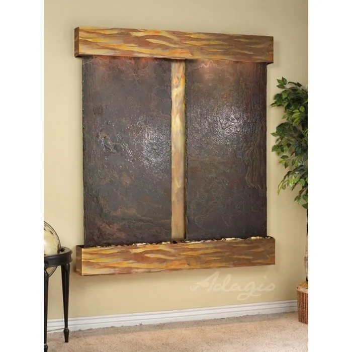 The Cottonwood Falls Collection offers the tranquility of water in motion falling over 2 beautiful Natural Slate, Marble, Travertine, Featherstone, or Mirror surfaces. Adagio Water Features represents the best the industry has to offer. *Comes complete with Polished River Rocks, Halogen lighting, and 2 pumps. *Comes with EZ Installation Instructions and DVD. *On/Off pull chain allows you to run lights only, water only, or water and lights together. *Dimmer Switch allows you to adjust the lighting to produce the desired ambiance. *Optional: Stone Selection, LED lights w/ remote, Black Polished Pebbles, Customized Logo and Water Distillers are available. *