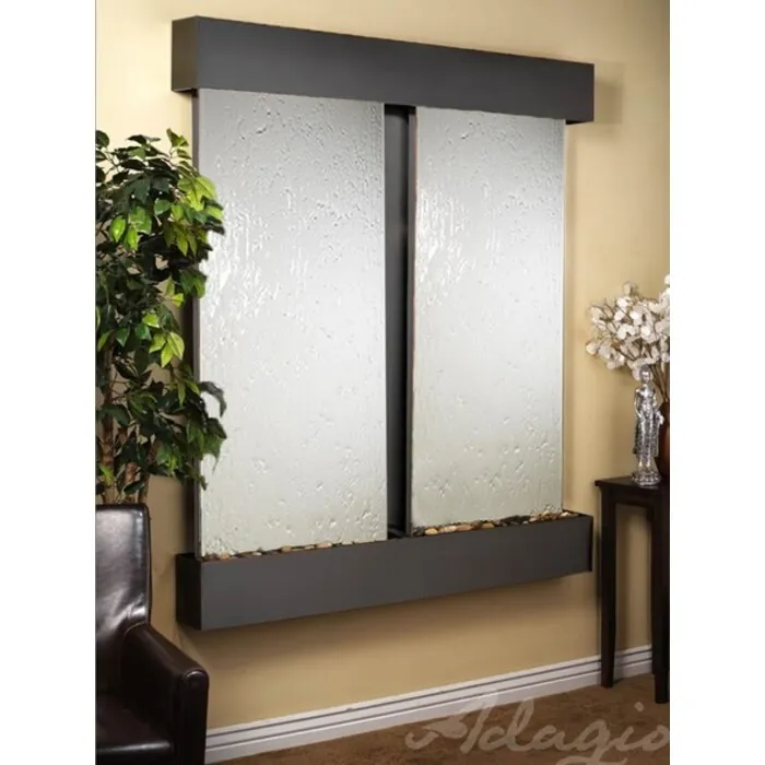The Cottonwood Falls Collection offers the tranquility of water in motion falling over 2 beautiful Natural Slate, Marble, Travertine, Featherstone, or Mirror surfaces. Adagio Water Features represents the best the industry has to offer. *Comes complete with Polished River Rocks, Halogen lighting, and 2 pumps. *Comes with EZ Installation Instructions and DVD. *On/Off pull chain allows you to run lights only, water only, or water and lights together. *Dimmer Switch allows you to adjust the lighting to produce the desired ambiance. *Optional: Stone Selection, LED lights w/ remote, Black Polished Pebbles, Customized Logo and Water Distillers are available. *