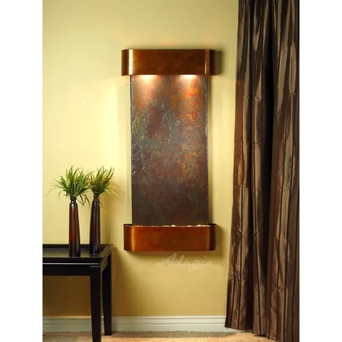 The Cascade Springs Collection offers the tranquility of water in motion falling over a beautiful Natural Slate, Marble, Featherstone, or Mirror surface. Adagio Water Features represents the best the industry has to offer. *Comes complete with Polished River Rocks, Halogen lighting, and 1 pump. *Comes with EZ Installation Instructions and DVD. *On/Off pull chain allows you to run lights only, water only, or water and lights together. *Dimmer Switch allows you to adjust the lighting to produce the desired ambiance. *Optional: Stone Selection, LED lights w/ remote, Black Polished Pebbles, Customized Logo and Water Distillers are available. *