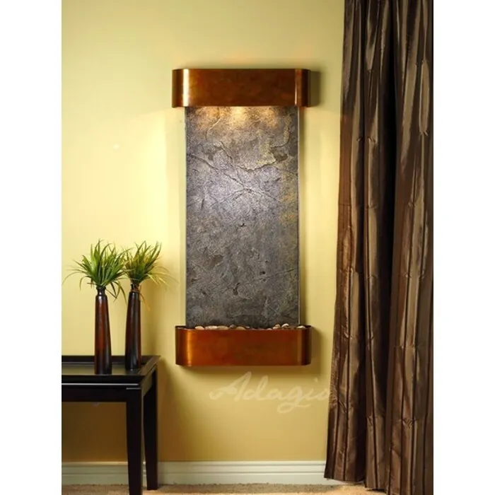 The Cascade Springs Collection offers the tranquility of water in motion falling over a beautiful Natural Slate, Marble, Featherstone, or Mirror surface. Adagio Water Features represents the best the industry has to offer. *Comes complete with Polished River Rocks, Halogen lighting, and 1 pump. *Comes with EZ Installation Instructions and DVD. *On/Off pull chain allows you to run lights only, water only, or water and lights together. *Dimmer Switch allows you to adjust the lighting to produce the desired ambiance. *Optional: Stone Selection, LED lights w/ remote, Black Polished Pebbles, Customized Logo and Water Distillers are available. *