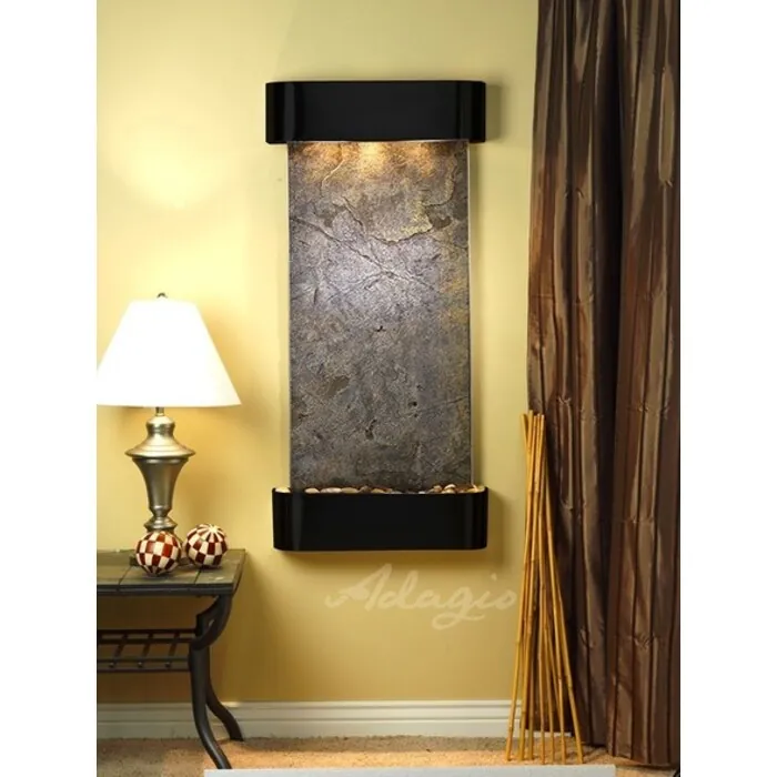 The Cascade Springs Collection offers the tranquility of water in motion falling over a beautiful Natural Slate, Marble, Featherstone, or Mirror surface. Adagio Water Features represents the best the industry has to offer. *Comes complete with Polished River Rocks, Halogen lighting, and 1 pump. *Comes with EZ Installation Instructions and DVD. *On/Off pull chain allows you to run lights only, water only, or water and lights together. *Dimmer Switch allows you to adjust the lighting to produce the desired ambiance. *Optional: Stone Selection, LED lights w/ remote, Black Polished Pebbles, Customized Logo and Water Distillers are available. *