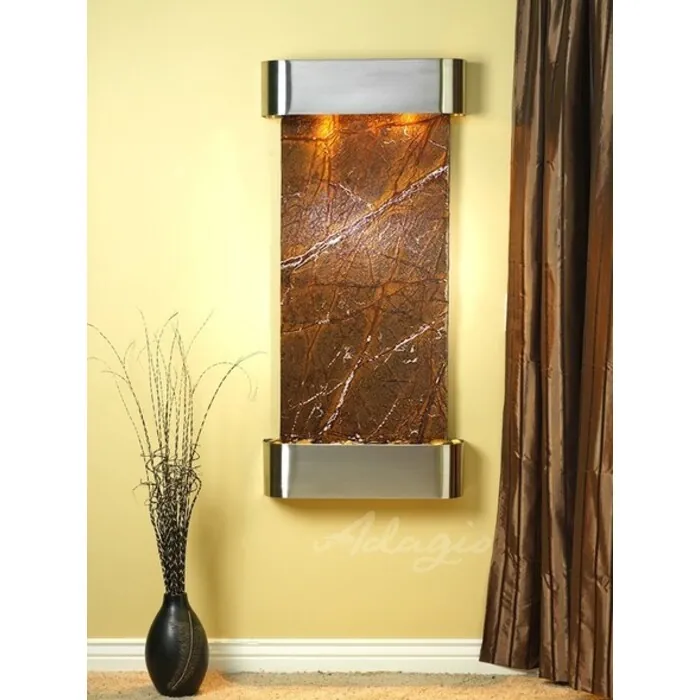 The Cascade Springs Collection offers the tranquility of water in motion falling over a beautiful Natural Slate, Marble, Featherstone, or Mirror surface. Adagio Water Features represents the best the industry has to offer. *Comes complete with Polished River Rocks, Halogen lighting, and 1 pump. *Comes with EZ Installation Instructions and DVD. *On/Off pull chain allows you to run lights only, water only, or water and lights together. *Dimmer Switch allows you to adjust the lighting to produce the desired ambiance. *Optional: Stone Selection, LED lights w/ remote, Black Polished Pebbles, Customized Logo and Water Distillers are available. *