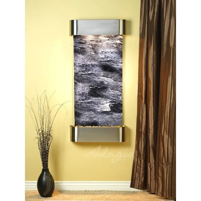 The Cascade Springs Collection offers the tranquility of water in motion falling over a beautiful Natural Slate, Marble, Featherstone, or Mirror surface. Adagio Water Features represents the best the industry has to offer. *Comes complete with Polished River Rocks, Halogen lighting, and 1 pump. *Comes with EZ Installation Instructions and DVD. *On/Off pull chain allows you to run lights only, water only, or water and lights together. *Dimmer Switch allows you to adjust the lighting to produce the desired ambiance. *Optional: Stone Selection, LED lights w/ remote, Black Polished Pebbles, Customized Logo and Water Distillers are available. *