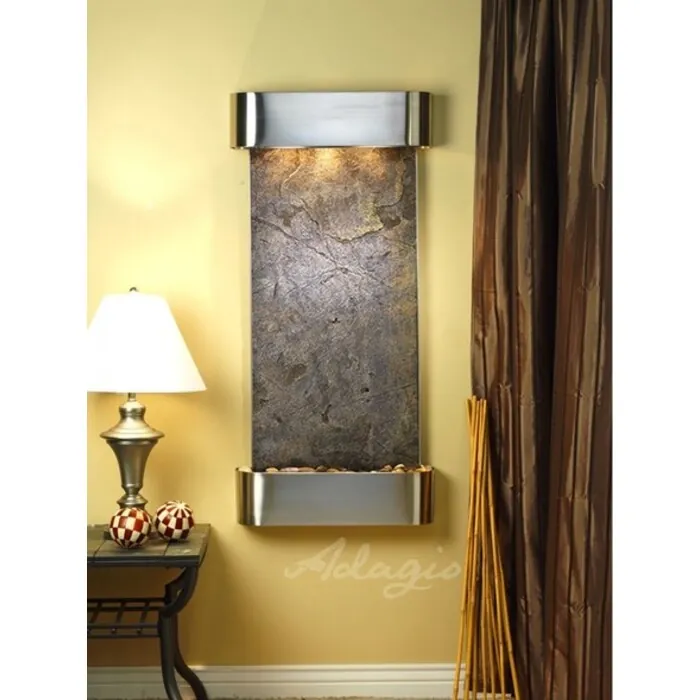 The Cascade Springs Collection offers the tranquility of water in motion falling over a beautiful Natural Slate, Marble, Featherstone, or Mirror surface. Adagio Water Features represents the best the industry has to offer. *Comes complete with Polished River Rocks, Halogen lighting, and 1 pump. *Comes with EZ Installation Instructions and DVD. *On/Off pull chain allows you to run lights only, water only, or water and lights together. *Dimmer Switch allows you to adjust the lighting to produce the desired ambiance. *Optional: Stone Selection, LED lights w/ remote, Black Polished Pebbles, Customized Logo and Water Distillers are available. *