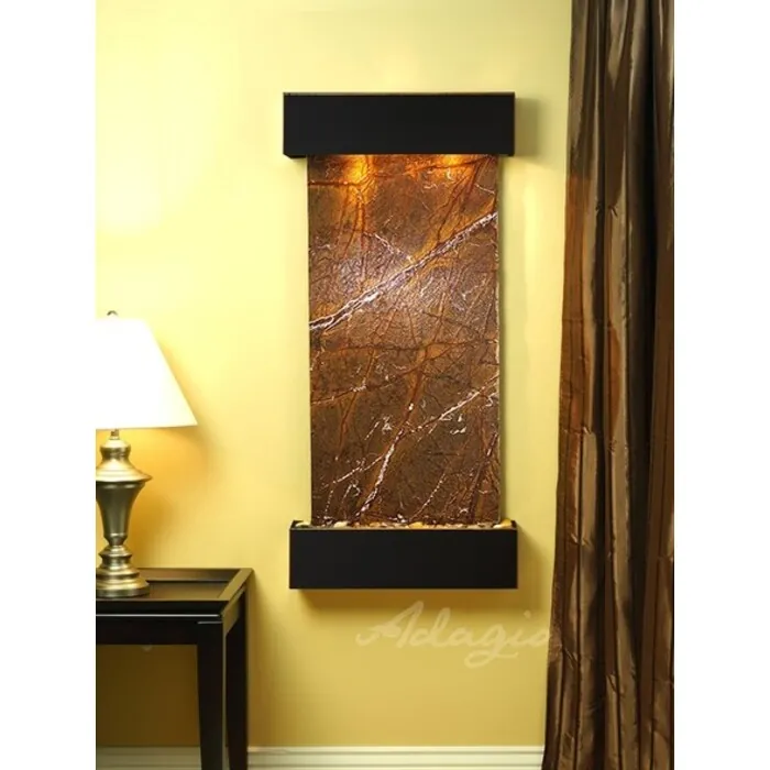 The Cascade Springs Collection offers the tranquility of water in motion falling over a beautiful Natural Slate, Marble, Featherstone, or Mirror surface. Adagio Water Features represents the best the industry has to offer. *Comes complete with Polished River Rocks, Halogen lighting, and 1 pump. *Comes with EZ Installation Instructions and DVD. *On/Off pull chain allows you to run lights only, water only, or water and lights together. *Dimmer Switch allows you to adjust the lighting to produce the desired ambiance. *Optional: Stone Selection, LED lights w/ remote, Black Polished Pebbles, Customized Logo and Water Distillers are available. *