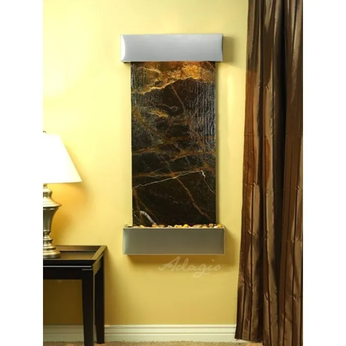The Cascade Springs Collection offers the tranquility of water in motion falling over a beautiful Natural Slate, Marble, Featherstone, or Mirror surface. Adagio Water Features represents the best the industry has to offer. *Comes complete with Polished River Rocks, Halogen lighting, and 1 pump. *Comes with EZ Installation Instructions and DVD. *On/Off pull chain allows you to run lights only, water only, or water and lights together. *Dimmer Switch allows you to adjust the lighting to produce the desired ambiance. *Optional: Stone Selection, LED lights w/ remote, Black Polished Pebbles, Customized Logo and Water Distillers are available. *