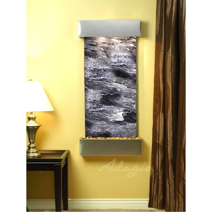 The Cascade Springs Collection offers the tranquility of water in motion falling over a beautiful Natural Slate, Marble, Featherstone, or Mirror surface. Adagio Water Features represents the best the industry has to offer. *Comes complete with Polished River Rocks, Halogen lighting, and 1 pump. *Comes with EZ Installation Instructions and DVD. *On/Off pull chain allows you to run lights only, water only, or water and lights together. *Dimmer Switch allows you to adjust the lighting to produce the desired ambiance. *Optional: Stone Selection, LED lights w/ remote, Black Polished Pebbles, Customized Logo and Water Distillers are available. *