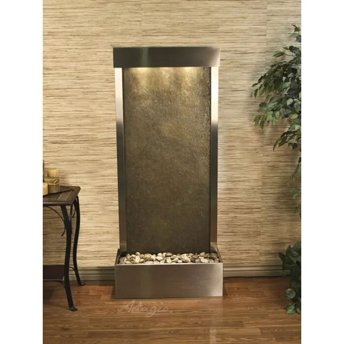 The Harmony River Collection offers the tranquility of water in motion falling over a beautiful Natural Marble, Featherstone, Glass, or Mirror surface. Adagio Water Features represents the best the industry has to offer. *Comes complete with Polished River Rocks, Halogen lighting, and 1 pump. *Comes with EZ Installation Instructions and DVD. *Center Mounts are good for room dividers and are movable! *Flush Mounts are best up against the wall and are also movable. *Optional: Stone Selection, LED lights w/ remote, Black Polished Pebbles, Customized Logo and Water Distiller are available. *