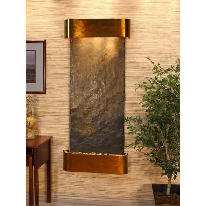 The Inspiration Falls Collection offers the tranquility of water in motion falling over a beautiful Natural Slate, Marble, Travertine, Featherstone, or Mirror surface. Adagio Water Features represents the best the industry has to offer. *Comes complete with Polished River Rocks, Halogen lighting, and 1 pump. *Comes with EZ Installation Instructions and DVD. *On/Off pull chain allows you to run lights only, water only, or water and lights together. *Dimmer Switch allows you to adjust the lighting to produce the desired ambiance. *Optional: Stone Selection, LED lights w/ remote, Black Polished Pebbles, Customized Logo and Water Distillers are available. *