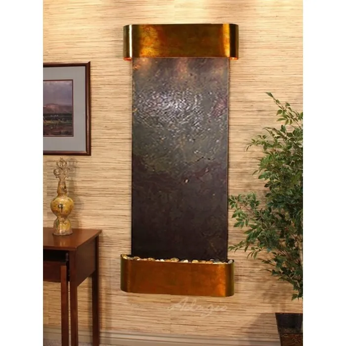 The Inspiration Falls Collection offers the tranquility of water in motion falling over a beautiful Natural Slate, Marble, Travertine, Featherstone, or Mirror surface. Adagio Water Features represents the best the industry has to offer. *Comes complete with Polished River Rocks, Halogen lighting, and 1 pump. *Comes with EZ Installation Instructions and DVD. *On/Off pull chain allows you to run lights only, water only, or water and lights together. *Dimmer Switch allows you to adjust the lighting to produce the desired ambiance. *Optional: Stone Selection, LED lights w/ remote, Black Polished Pebbles, Customized Logo and Water Distillers are available. *