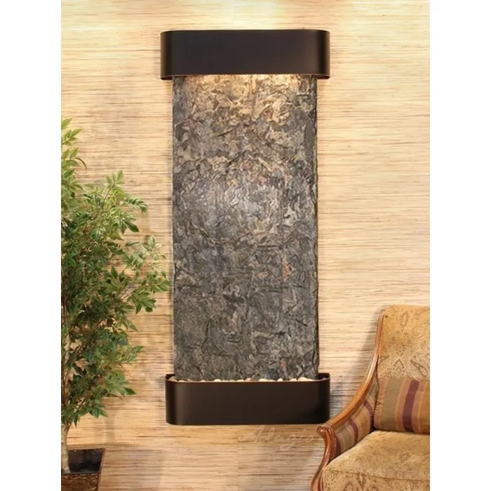 The Inspiration Falls Collection offers the tranquility of water in motion falling over a beautiful Natural Slate, Marble, Travertine, Featherstone, or Mirror surface. Adagio Water Features represents the best the industry has to offer. *Comes complete with Polished River Rocks, Halogen lighting, and 1 pump. *Comes with EZ Installation Instructions and DVD. *On/Off pull chain allows you to run lights only, water only, or water and lights together. *Dimmer Switch allows you to adjust the lighting to produce the desired ambiance. *Optional: Stone Selection, LED lights w/ remote, Black Polished Pebbles, Customized Logo and Water Distillers are available. *