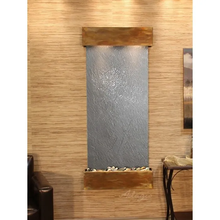 The Inspiration Falls Collection offers the tranquility of water in motion falling over a beautiful Natural Slate, Marble, Travertine, Featherstone, or Mirror surface. Adagio Water Features represents the best the industry has to offer. *Comes complete with Polished River Rocks, Halogen lighting, and 1 pump. *Comes with EZ Installation Instructions and DVD. *On/Off pull chain allows you to run lights only, water only, or water and lights together. *Dimmer Switch allows you to adjust the lighting to produce the desired ambiance. *Optional: Stone Selection, LED lights w/ remote, Black Polished Pebbles, Customized Logo and Water Distillers are available. *