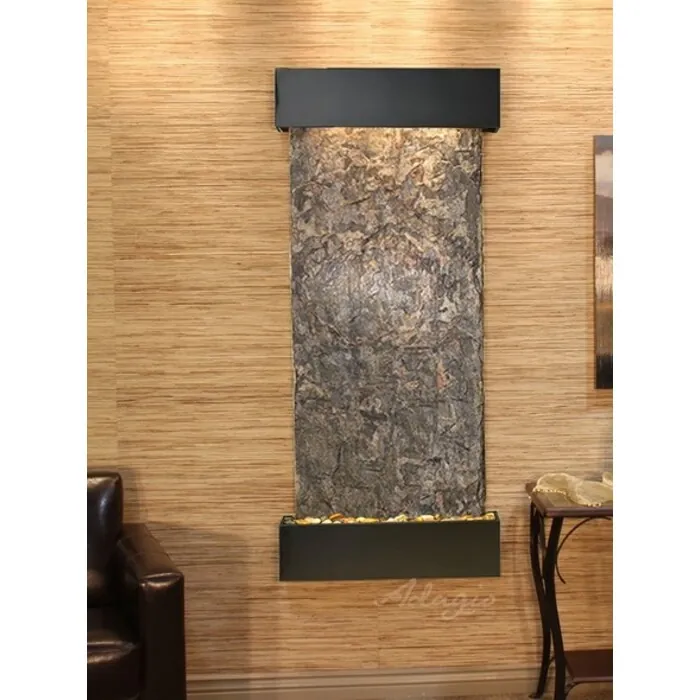 The Inspiration Falls Collection offers the tranquility of water in motion falling over a beautiful Natural Slate, Marble, Travertine, Featherstone, or Mirror surface. Adagio Water Features represents the best the industry has to offer. *Comes complete with Polished River Rocks, Halogen lighting, and 1 pump. *Comes with EZ Installation Instructions and DVD. *On/Off pull chain allows you to run lights only, water only, or water and lights together. *Dimmer Switch allows you to adjust the lighting to produce the desired ambiance. *Optional: Stone Selection, LED lights w/ remote, Black Polished Pebbles, Customized Logo and Water Distillers are available. *