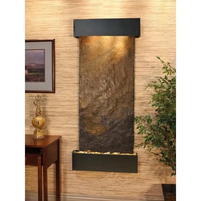The Inspiration Falls Collection offers the tranquility of water in motion falling over a beautiful Natural Slate, Marble, Travertine, Featherstone, or Mirror surface. Adagio Water Features represents the best the industry has to offer. *Comes complete with Polished River Rocks, Halogen lighting, and 1 pump. *Comes with EZ Installation Instructions and DVD. *On/Off pull chain allows you to run lights only, water only, or water and lights together. *Dimmer Switch allows you to adjust the lighting to produce the desired ambiance. *Optional: Stone Selection, LED lights w/ remote, Black Polished Pebbles, Customized Logo and Water Distillers are available. *