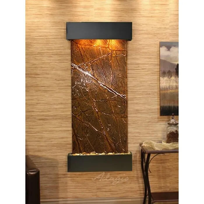 The Inspiration Falls Collection offers the tranquility of water in motion falling over a beautiful Natural Slate, Marble, Travertine, Featherstone, or Mirror surface. Adagio Water Features represents the best the industry has to offer. *Comes complete with Polished River Rocks, Halogen lighting, and 1 pump. *Comes with EZ Installation Instructions and DVD. *On/Off pull chain allows you to run lights only, water only, or water and lights together. *Dimmer Switch allows you to adjust the lighting to produce the desired ambiance. *Optional: Stone Selection, LED lights w/ remote, Black Polished Pebbles, Customized Logo and Water Distillers are available. *