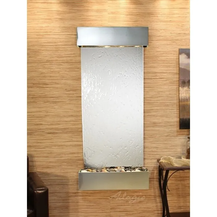 The Inspiration Falls Collection offers the tranquility of water in motion falling over a beautiful Natural Slate, Marble, Travertine, Featherstone, or Mirror surface. Adagio Water Features represents the best the industry has to offer. *Comes complete with Polished River Rocks, Halogen lighting, and 1 pump. *Comes with EZ Installation Instructions and DVD. *On/Off pull chain allows you to run lights only, water only, or water and lights together. *Dimmer Switch allows you to adjust the lighting to produce the desired ambiance. *Optional: Stone Selection, LED lights w/ remote, Black Polished Pebbles, Customized Logo and Water Distillers are available. *