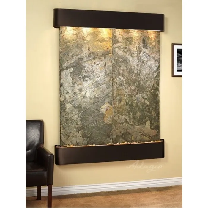 The Majestic River Collection offers the tranquility of water in motion falling over a beautiful Natural Slate, Marble or Travertine surface. Adagio Water Features represents the best the industry has to offer. *Comes complete with polished river rock, halogen lighting, and 2 pumps. *Comes with EZ Installation Instructions and DVD. *On/Off pull chain allows you to run lights only, water only, or water and lights together. *Dimmer Switch allows you to adjust the lighting to produce the desired ambiance. *Optional: Stone Selection, Led Lights w/ Remote, Black Polished Pebbles, Customized Logo and Water Distillers are available. *