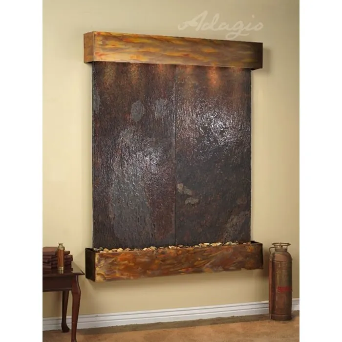 The Majestic River Collection offers the tranquility of water in motion falling over a beautiful Natural Slate, Marble or Travertine surface. Adagio Water Features represents the best the industry has to offer. *Comes complete with polished river rock, halogen lighting, and 2 pumps. *Comes with EZ Installation Instructions and DVD. *On/Off pull chain allows you to run lights only, water only, or water and lights together. *Dimmer Switch allows you to adjust the lighting to produce the desired ambiance. *Optional: Stone Selection, Led Lights w/ Remote, Black Polished Pebbles, Customized Logo and Water Distillers are available. *
