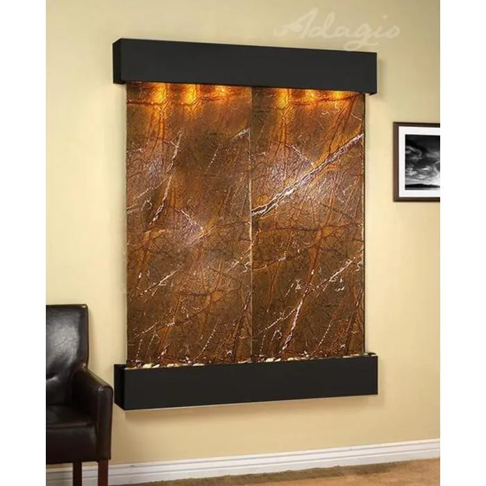 The Majestic River Collection offers the tranquility of water in motion falling over a beautiful Natural Slate, Marble or Travertine surface. Adagio Water Features represents the best the industry has to offer. *Comes complete with polished river rock, halogen lighting, and 2 pumps. *Comes with EZ Installation Instructions and DVD. *On/Off pull chain allows you to run lights only, water only, or water and lights together. *Dimmer Switch allows you to adjust the lighting to produce the desired ambiance. *Optional: Stone Selection, Led Lights w/ Remote, Black Polished Pebbles, Customized Logo and Water Distillers are available. *