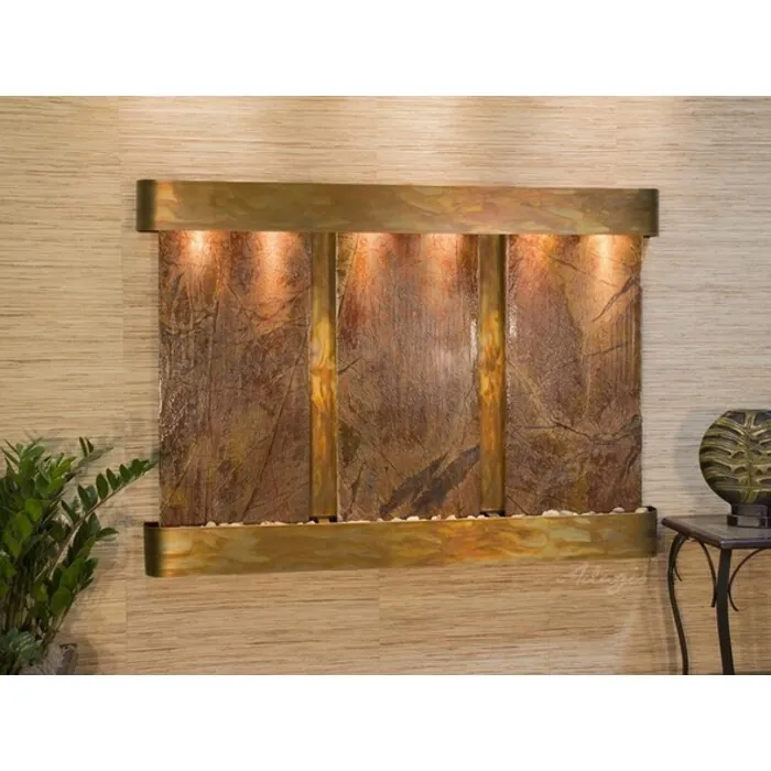 The Olympus Falls Collection offers the tranquility of water in motion falling over 3 beautiful Natural Slate, Marble, Featherstone, or Mirror surfaces. Adagio Water Features represents the best the industry has to offer. *Comes complete with Polished River Rocks, Halogen lighting, and 3 pumps. *Comes with EZ Installation Instructions and DVD. *On/Off pull chain allows you to run lights only, water only, or water and lights together. *Dimmer Switch allows you to adjust the lighting to produce the desired ambiance. *Optional: Stone Selection, LED lights w/ remote, Black Polished Pebbles, Customized Logo and Water Distillers are available. *