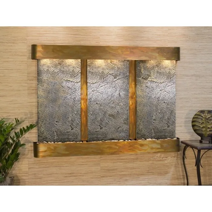 The Olympus Falls Collection offers the tranquility of water in motion falling over 3 beautiful Natural Slate, Marble, Featherstone, or Mirror surfaces. Adagio Water Features represents the best the industry has to offer. *Comes complete with Polished River Rocks, Halogen lighting, and 3 pumps. *Comes with EZ Installation Instructions and DVD. *On/Off pull chain allows you to run lights only, water only, or water and lights together. *Dimmer Switch allows you to adjust the lighting to produce the desired ambiance. *Optional: Stone Selection, LED lights w/ remote, Black Polished Pebbles, Customized Logo and Water Distillers are available. *