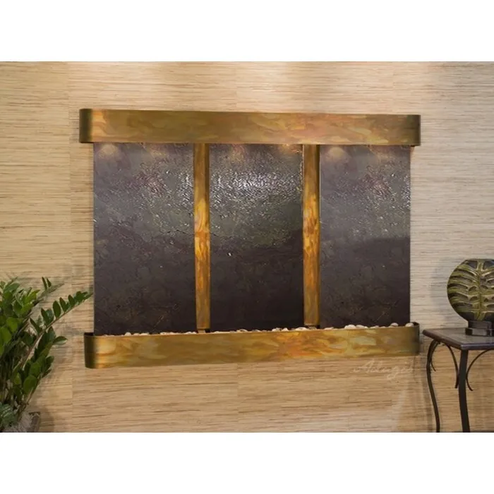The Olympus Falls Collection offers the tranquility of water in motion falling over 3 beautiful Natural Slate, Marble, Featherstone, or Mirror surfaces. Adagio Water Features represents the best the industry has to offer. *Comes complete with Polished River Rocks, Halogen lighting, and 3 pumps. *Comes with EZ Installation Instructions and DVD. *On/Off pull chain allows you to run lights only, water only, or water and lights together. *Dimmer Switch allows you to adjust the lighting to produce the desired ambiance. *Optional: Stone Selection, LED lights w/ remote, Black Polished Pebbles, Customized Logo and Water Distillers are available. *