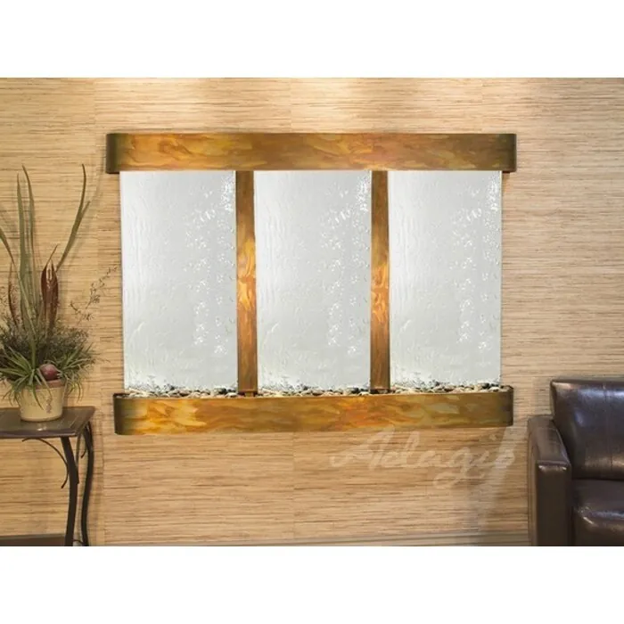The Olympus Falls Collection offers the tranquility of water in motion falling over 3 beautiful Natural Slate, Marble, Featherstone, or Mirror surfaces. Adagio Water Features represents the best the industry has to offer. *Comes complete with Polished River Rocks, Halogen lighting, and 3 pumps. *Comes with EZ Installation Instructions and DVD. *On/Off pull chain allows you to run lights only, water only, or water and lights together. *Dimmer Switch allows you to adjust the lighting to produce the desired ambiance. *Optional: Stone Selection, LED lights w/ remote, Black Polished Pebbles, Customized Logo and Water Distillers are available. *