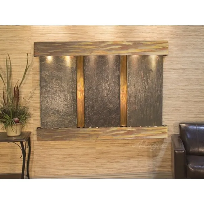 The Olympus Falls Collection offers the tranquility of water in motion falling over 3 beautiful Natural Slate, Marble, Featherstone, or Mirror surfaces. Adagio Water Features represents the best the industry has to offer. *Comes complete with Polished River Rocks, Halogen lighting, and 3 pumps. *Comes with EZ Installation Instructions and DVD. *On/Off pull chain allows you to run lights only, water only, or water and lights together. *Dimmer Switch allows you to adjust the lighting to produce the desired ambiance. *Optional: Stone Selection, LED lights w/ remote, Black Polished Pebbles, Customized Logo and Water Distillers are available. *