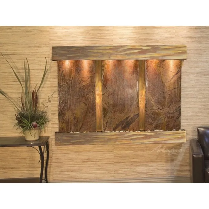 The Olympus Falls Collection offers the tranquility of water in motion falling over 3 beautiful Natural Slate, Marble, Featherstone, or Mirror surfaces. Adagio Water Features represents the best the industry has to offer. *Comes complete with Polished River Rocks, Halogen lighting, and 3 pumps. *Comes with EZ Installation Instructions and DVD. *On/Off pull chain allows you to run lights only, water only, or water and lights together. *Dimmer Switch allows you to adjust the lighting to produce the desired ambiance. *Optional: Stone Selection, LED lights w/ remote, Black Polished Pebbles, Customized Logo and Water Distillers are available. *