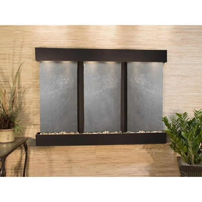 The Olympus Falls Collection offers the tranquility of water in motion falling over 3 beautiful Natural Slate, Marble, Featherstone, or Mirror surfaces. Adagio Water Features represents the best the industry has to offer. *Comes complete with Polished River Rocks, Halogen lighting, and 3 pumps. *Comes with EZ Installation Instructions and DVD. *On/Off pull chain allows you to run lights only, water only, or water and lights together. *Dimmer Switch allows you to adjust the lighting to produce the desired ambiance. *Optional: Stone Selection, LED lights w/ remote, Black Polished Pebbles, Customized Logo and Water Distillers are available. *