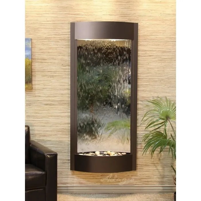 The Pacifica Waters Collection offers the tranquility of water in motion falling over a beautiful Natural Featherstone or Mirror surface. Adagio Water Features represents the best the industry has to offer. *Comes complete with Polished River Rocks, Halogen lighting, and 1 pump. *Comes with EZ Installation Instructions. *Simple On/Off switch is located on the top of the feature. *Optional: Stone Selection, LED lights w/ remote, Black Polished Pebbles, Customized Logo and Water Distillers are available. *