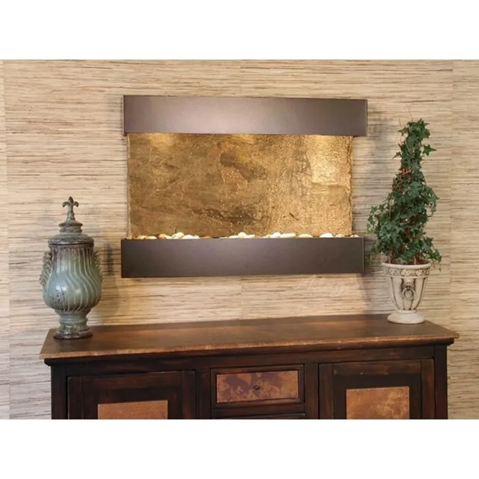 The Reflection Creek Collection offers the tranquility of water in motion falling over a beautiful Natural Slate, Featherstone, or Mirror surface. (Smallest Horizontal Feature) Adagio Water Features represents the best the industry has to offer. *Comes complete with Polished River Rocks, Halogen lighting, and 1 pump. *Comes with EZ Installation Instructions and DVD.*Simple On/Off switch is located on the top of the feature. *Optional: Stone Selection, LED lights w/ remote, Black Polished Pebbles, Customized Logo and Water Distillers are available. *