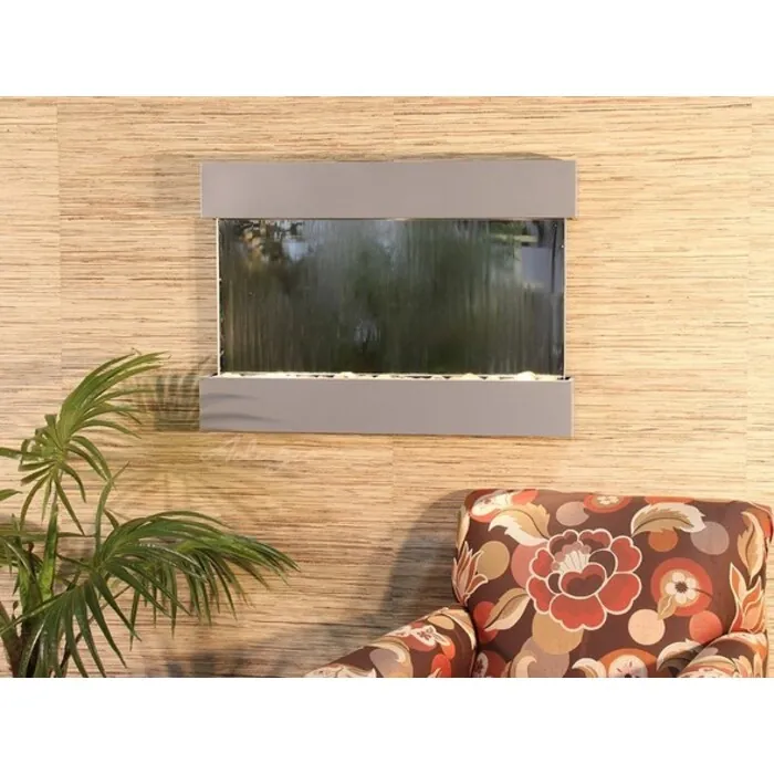 The Reflection Creek Collection offers the tranquility of water in motion falling over a beautiful Natural Slate, Featherstone, or Mirror surface. (Smallest Horizontal Feature) Adagio Water Features represents the best the industry has to offer. *Comes complete with Polished River Rocks, Halogen lighting, and 1 pump. *Comes with EZ Installation Instructions and DVD.*Simple On/Off switch is located on the top of the feature. *Optional: Stone Selection, LED lights w/ remote, Black Polished Pebbles, Customized Logo and Water Distillers are available. *