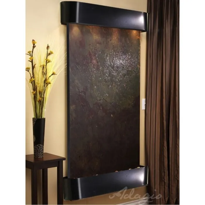 The Summit Falls Collection offers the tranquility of water in motion falling over a beautiful Natural Featherstone or Mirror surface. Adagio Water Features represents the best the industry has to offer. *Comes complete with Polished River Rocks, Halogen lighting, and 2 pump. *Comes with EZ Installation Instructions and DVD. *On/Off pull chain allows you to run lights only, water only, or water and lights together. *Dimmer Switch allows you to adjust the lighting to produce the desired ambiance. *Optional: Stone Selection, LED lights w/ remote, Black Polished Pebbles, Customized Logo and Water Distillers are available. *