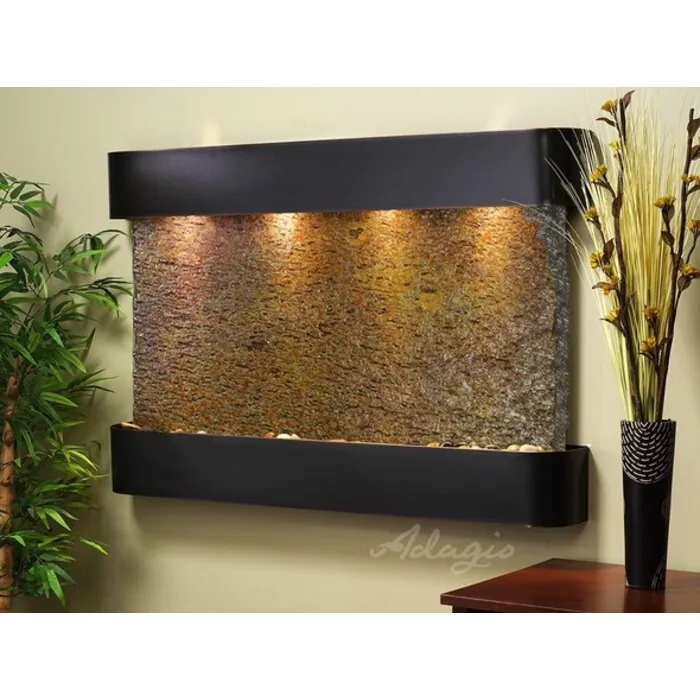 The Sunrise Springs Collection offers the tranquility of water in motion falling over a beautiful Natural Slate, Marble, Travertine, Featherstone, or Mirror surface. Adagio Water Features represents the best the industry has to offer. *Comes complete with Polished River Rocks, Halogen lighting, and 1 pump. *Comes with EZ Installation Instructions and DVD. *On/Off pull chain allows you to run lights only, water only, or water and lights together. *Dimmer Switch allows you to adjust the lighting to produce the desired ambiance. *Optional: Stone Selection, LED lights w/ remote, Black Polished Pebbles, Customized Logo and Water Distillers are available. *