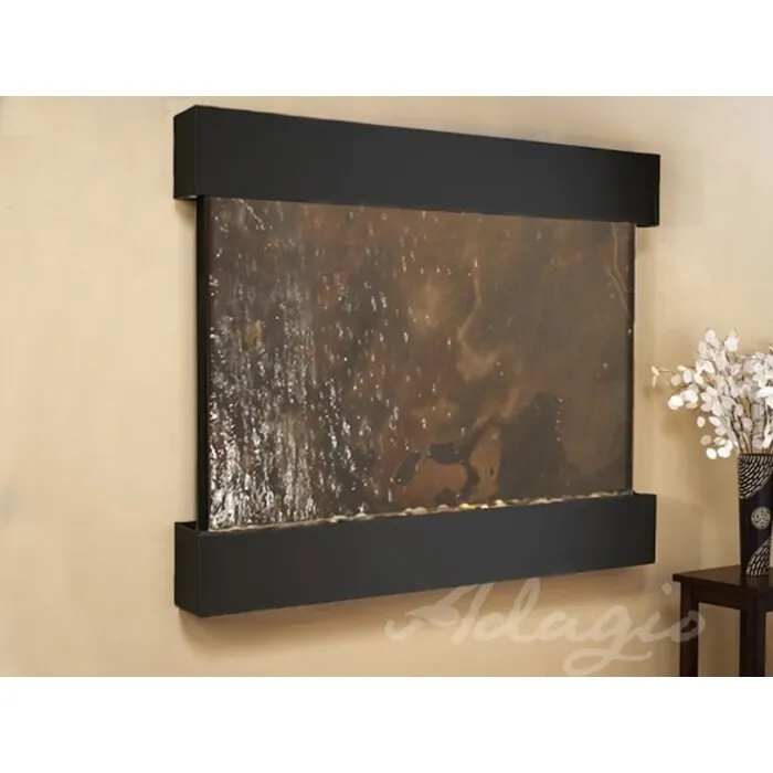 The Teton Falls Collection offers the tranquility of water in motion falling over a beautiful Featherstone or Mirror surface. Adagio Water Features represents the best the industry has to offer. *Comes complete with Polished River Rocks, Halogen lighting, and 1 pump. *Comes with EZ Installation Instructions and DVD. *On/Off pull chain allows you to run lights only, water only, or water and lights together. *Dimmer Switch allows you to adjust the lighting to produce the desired ambiance. *Optional: Stone Selection, LED lights w/ remote, Black Polished Pebbles, Customized Logo and Water Distillers are available. *