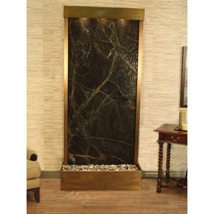 The Tranquil River Collection offers the tranquility of water in motion falling over a beautiful Natural Marble, Featherstone, Glass, or Mirror surface. Adagio Water Features represents the best the industry has to offer. *Comes complete with Polished River Rocks, Halogen lighting, and 1 pump. *Comes with EZ Installation Instructions and DVD. *Center Mounts are good for room dividers and are movable! *Flush Mounts are best up against the wall and are movable. *Optional: Stone Selection, LED lights w/ remote, Black Polished Pebbles, Customized Logo and Water Distillers are available. *