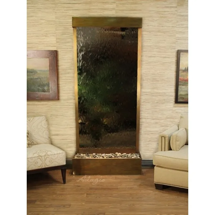 The Tranquil River Collection offers the tranquility of water in motion falling over a beautiful Natural Marble, Featherstone, Glass, or Mirror surface. Adagio Water Features represents the best the industry has to offer. *Comes complete with Polished River Rocks, Halogen lighting, and 1 pump. *Comes with EZ Installation Instructions and DVD. *Center Mounts are good for room dividers and are movable! *Flush Mounts are best up against the wall and are movable. *Optional: Stone Selection, LED lights w/ remote, Black Polished Pebbles, Customized Logo and Water Distillers are available. *