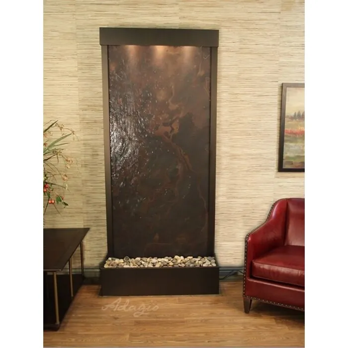 The Tranquil River Collection offers the tranquility of water in motion falling over a beautiful Natural Marble, Featherstone, Glass, or Mirror surface. Adagio Water Features represents the best the industry has to offer. *Comes complete with Polished River Rocks, Halogen lighting, and 1 pump. *Comes with EZ Installation Instructions and DVD. *Center Mounts are good for room dividers and are movable! *Flush Mounts are best up against the wall and are movable. *Optional: Stone Selection, LED lights w/ remote, Black Polished Pebbles, Customized Logo and Water Distillers are available. *
