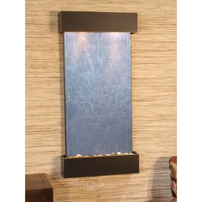 The Whispering Creek Collection offers the tranquility of water in motion falling over a beautiful Natural Slate, Featherstone, or Mirror surface. Adagio Water Features represents the best the industry has to offer. *Comes complete with Polished River Rocks, Halogen lighting, and 1 pump. *Comes with EZ Installation Instructions and DVD. *Simple On/Off switch is located on the top of the feature. *Optional: Stone Selection, LED lights w/ remote, Black Polished Pebbles, Customized Logo and Water Distillers are available. *
