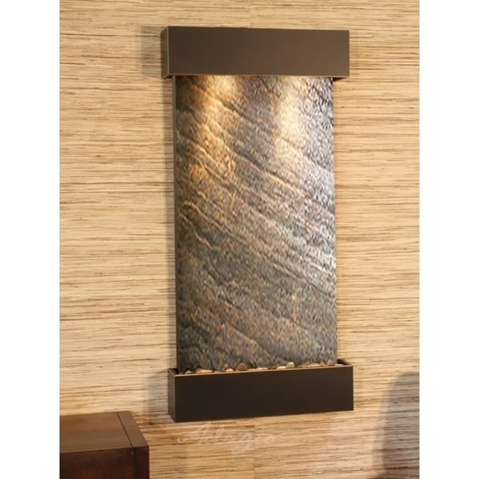 The Whispering Creek Collection offers the tranquility of water in motion falling over a beautiful Natural Slate, Featherstone, or Mirror surface. Adagio Water Features represents the best the industry has to offer. *Comes complete with Polished River Rocks, Halogen lighting, and 1 pump. *Comes with EZ Installation Instructions and DVD. *Simple On/Off switch is located on the top of the feature. *Optional: Stone Selection, LED lights w/ remote, Black Polished Pebbles, Customized Logo and Water Distillers are available. *