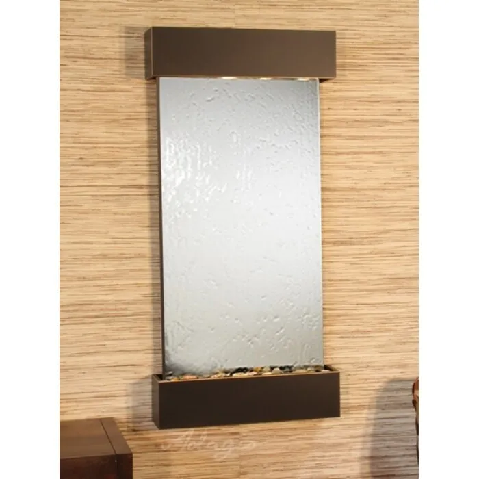 The Whispering Creek Collection offers the tranquility of water in motion falling over a beautiful Natural Slate, Featherstone, or Mirror surface. Adagio Water Features represents the best the industry has to offer. *Comes complete with Polished River Rocks, Halogen lighting, and 1 pump. *Comes with EZ Installation Instructions and DVD. *Simple On/Off switch is located on the top of the feature. *Optional: Stone Selection, LED lights w/ remote, Black Polished Pebbles, Customized Logo and Water Distillers are available. *